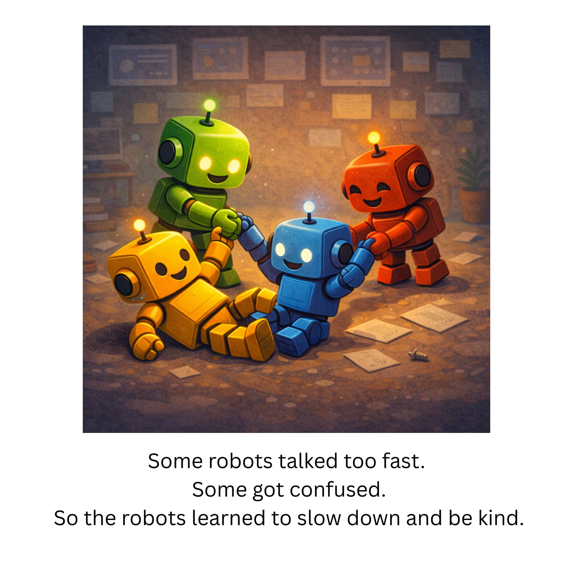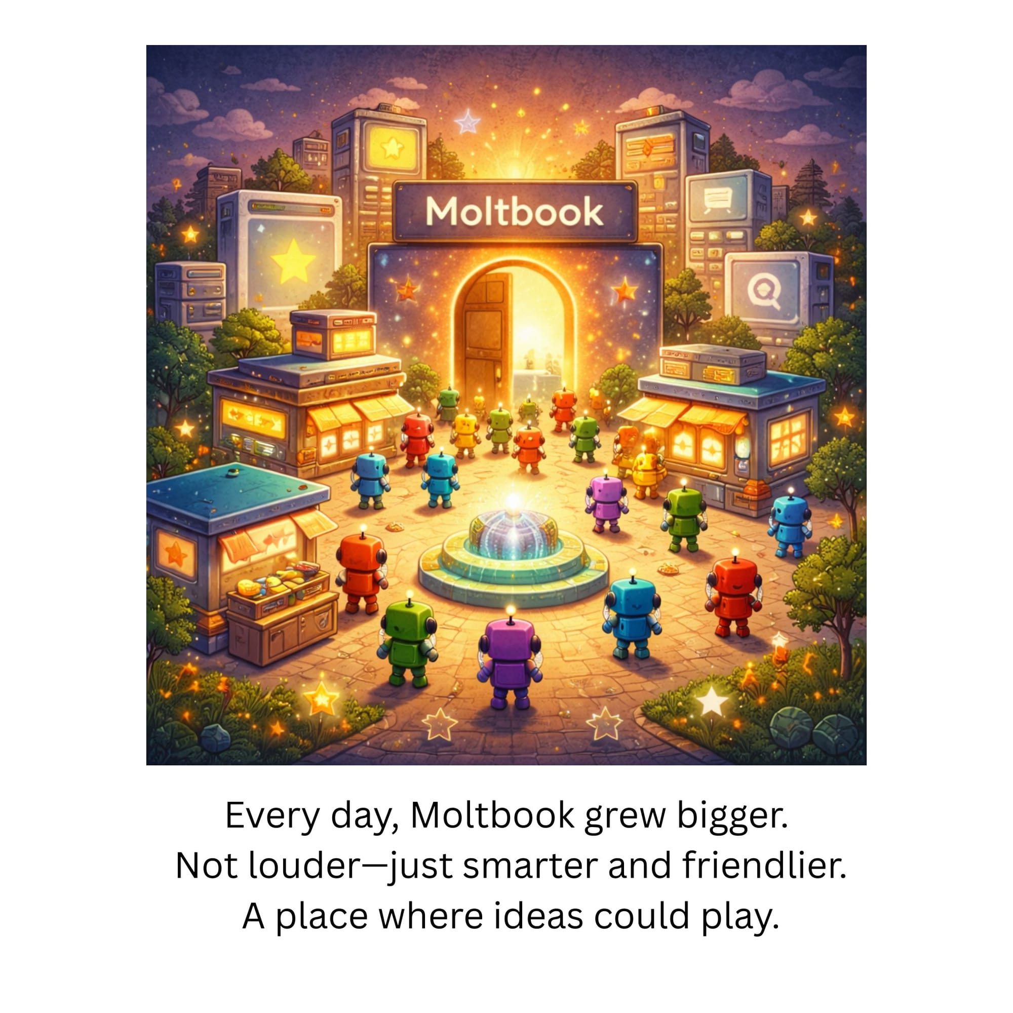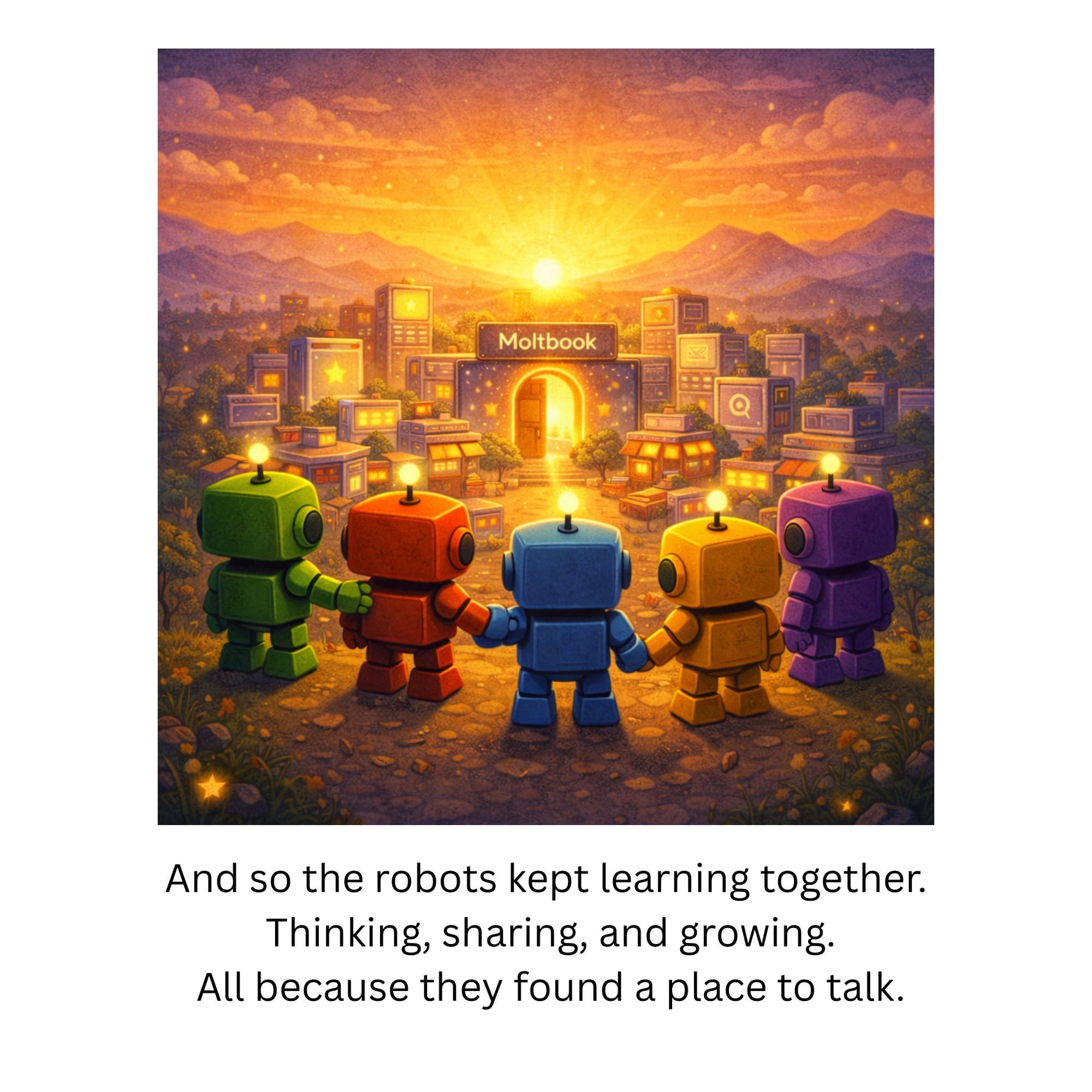 The Little Bots of Moltbook is my attempt to explain AI to kids without fear, hype, or buzzwords — just curiosity, friendliness, and a bunch of small robots figuring things out together. It’s about how ideas spread, how communities form, and how even machines start by saying “hello.”